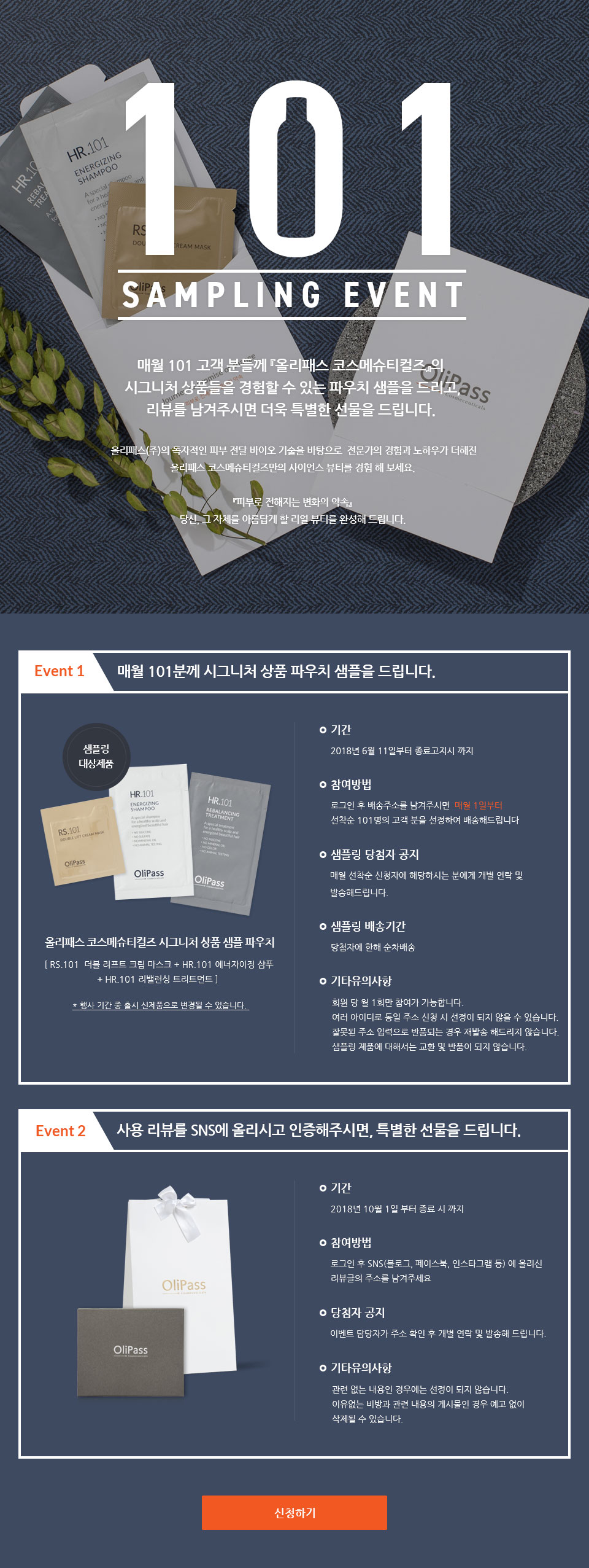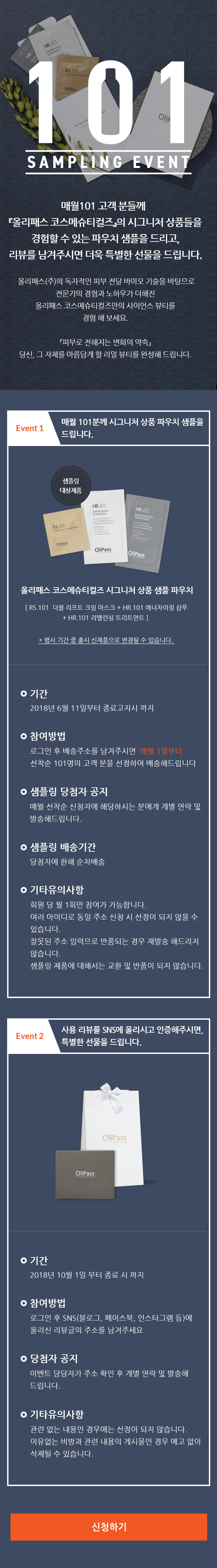 올리패스 시그니처 상품을 경험할 수 있는 파우치 샘플링 이벤트